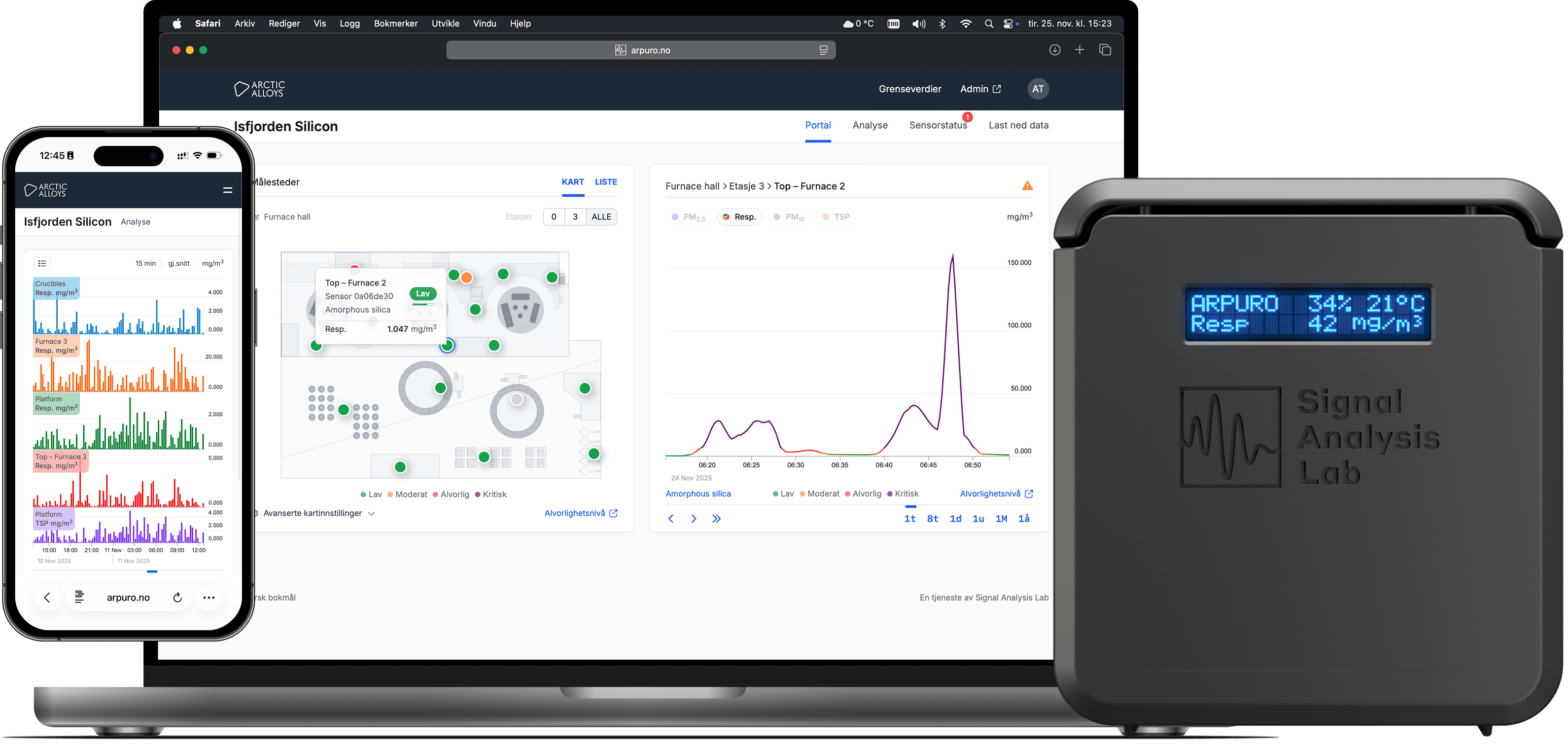 Arpuro forener laboratoriemålinger, feltkalibrering og datadrevne analyser for å gi pålitelig overvåking av industristøv.